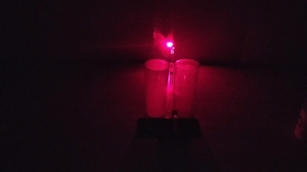 Con un láser de juguete, una jeringa sin aguja y una gota de agua podremos observar bacterias y/o microorganismos presentes en agua sucia o en la saliva gracias al fenómeno de difracción.
